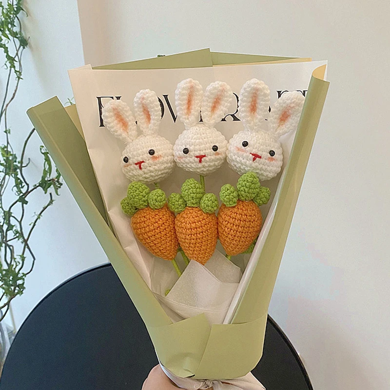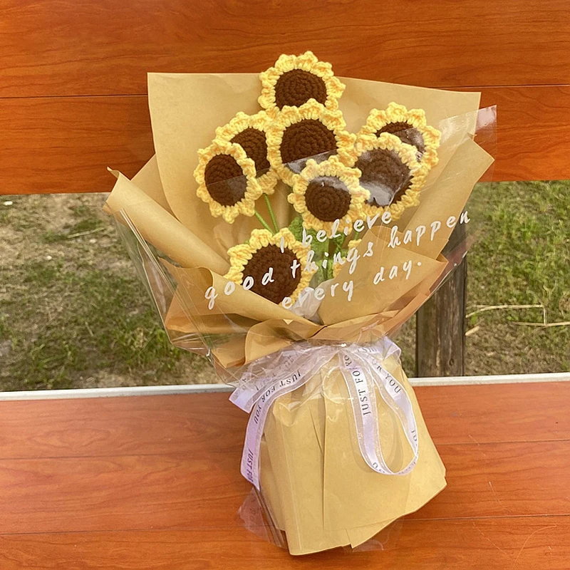 Elevate your decor and gifting with our exquisite Hand-Knitted Crochet Flower Bouquet. Featuring a delightful blend of roses, tulips, sunflowers, and daisies, this artificial flower arrangement is crafted with high-quality milk cotton and iron materials. Each flower is meticulously hand-woven, offering a unique and timeless piece that requires no maintenance and remains vibrant year after year.