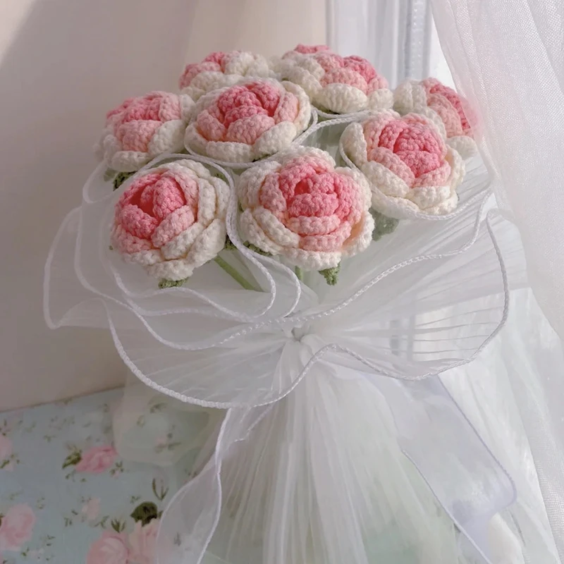 Hand-Knitted Crochet Flower Bouquet - Artificial Roses, Tulips, Sunflowers, Daisies for Wedding, Home Decor, and Gifts